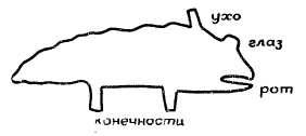 Обычная разновидность волка представляет собой животное с одной пастью и двумя отростками, называемыми конечностями. Для чего служат эти конечности, неизвестно, во всяком случае не для передвижения. На теле волка различают два выступа. Один из выступов, расположенный ближе к пасти, служит глазом, другой– ухом. Волк – опасный зверь. Он может проглотить любого из нас целиком.