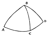 – Уважаемые господа, высокоученые члены прославленного факультета! Позвольте мне высказать одно-единственное замечание по поводу выступления предыдущего оратора. Я в состоянии начертить треугольник, обладающий требуемым свойством. Предыдущий оратор уже отметил, что этот треугольник должен быть странным, необычным. Вот я и намереваюсь продемонстрировать вам треугольник не с прямолинейными, а с криволинейными сторонами, у которого сумма углов больше 180°.