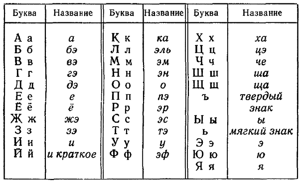 В русском языке 33 буквы, которые расположены в определенном порядке и составляют алфавит, или азбуку.