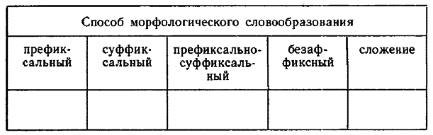 74. Впишите слова в таблицу (отдельно каждую группу) в зависимости от способа морфологического словообразования.