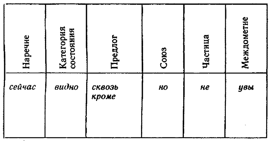В особые группы выделяются модальные слова, междометия и звукоподражательные слова.