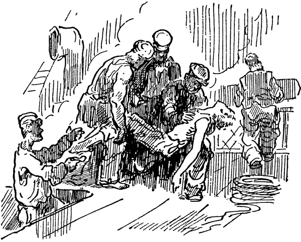 И в ту же минуту и люди и лошади попадали от страшного толчка. Нос парохода поднялся и вылез из воды.