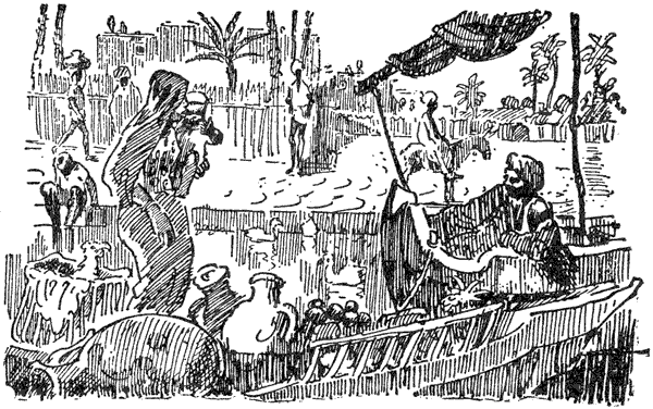 Порт-Саид вырос из маленькой арабской деревушки и состоит из ряда пересекающихся под прямыми углами узких улиц с двух-трехэтажными домами-коробками, окрашенными в грязно-серую краску. Вся жизнь – на улице, в многочисленных кафе, за столиками с прохладительными напитками. Толпа интернациональна, преобладающий говор – французский. Иногда встречаются группы бедуинов в красочных бурнусах, изредка – закутанные в черное арабские женщины с серебряными браслетами на голых ногах. Зелени не видно нигде, только островок, на котором построен дворец правления общества Суэцкого канала, единственная красивая постройка Порт-Саида, зеленеет тощими пальмами.