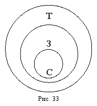 Объёмы трёх понятий: «звёзды» (З); «тела, излучающие энергию» (Т); «Солнце» (С), схематично расположатся следующим образом (рис. 33):