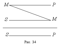 Гелий (S) – это химический элемент (Р). Учитывая, что в первой посылке средний термин связан с предикатом, во второй субъект связан со средним термином, а в выводе субъект связан с предикатом, составим схему расположения и связи терминов в приведённом примере (рис. 34):