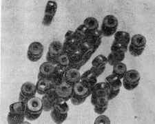 Этим, однако, не исчерпывался инвентарь этого любопытного погребения. Сбоку от дубового гроба были аккуратно прикрыты доской два сосуда – лепной горшочек и краснолаковая миска. Там же оказались вторая пара бронзовых серег-колечек и железный нож. В горшочке и миске, несомненно, находилась пища для заупокойной трапезы погребенной. Кроме того, прямо в гроб было положено некоторое количество грецких орехов и каштанов. Может быть, эти плоды были любимым лакомством умершей и заботливые родственники не забыли дать ей их с собой в последнюю дорогу. Наконец, среди камней заклада катакомбы оказался так называемый бальзамарий – стеклянный сосудик с очень высоким узким горлышком, служивший для хранения каких-то ароматических веществ, – нечто вроде современного флакона для духов.