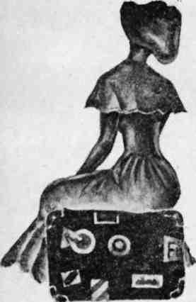 П е р с о н а ж (в зал). Он мог бы сказать многое, но… в это время внизу послышались шаги, чьи-то тонкие каблучки застучали по лестнице, и на площадке появилась девушка. В руках у нее тоже был чемоданчик, очень похожий на тот, который мы уже видели… (Исчезает.)