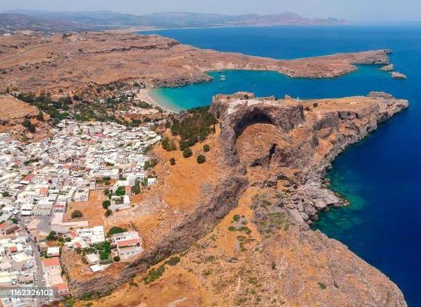 2 Современный город Родос был основан только в 408 году до н.э. Главным городом острова Родос считался Линдос, расположенный на южном берегу. Он был поименован первым в «Списке кораблей» в Илиаде. Его акрополь представляет собой отвесную скалу. Ниже его современный вид.