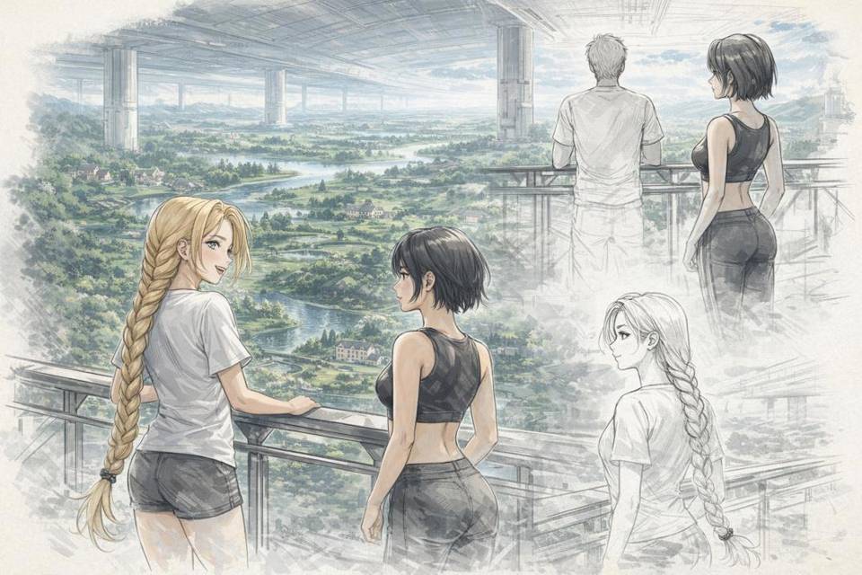 С ней была подруга такого же возраста. У той были короткие тёмные волосы, облегающие штаны и спортивный топ. Обе сидели у ограды и смотрели на меня.