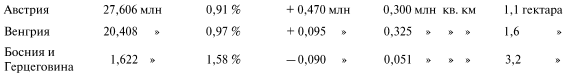 73 Черногория сочтена в нашей таблице вместе с Сербией лишь по причине малости поверхности и населения, которое в Черногории едва достигает четверти миллиона.
