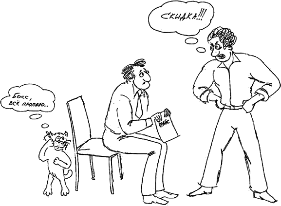 … Через пять минут, обменявшись несколькими фразами с директором, встает и уходит Главный бухгалтер, второе по важности лицо на встрече. Третий сотрудник вслух разговаривает по телефону, двое оставшихся смотрят в окно и перешептываются. Директор открывает ноутбук и начинает что-то в нем сосредоточенно изучать…