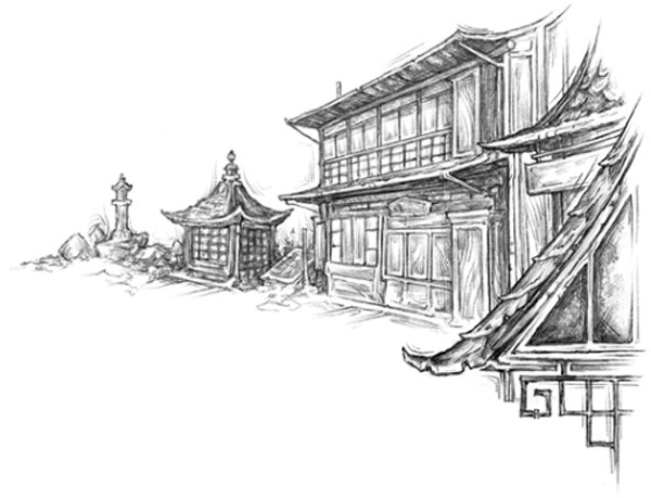 Пейзаж разваливающегося на куски современного города разбавляли дома в традиционном стиле, на удивление чистые и целые, словно прошедшийся по городу ураган аккуратно огибал их. Казалось, перед нами предстало ожившее суми-э[3]3