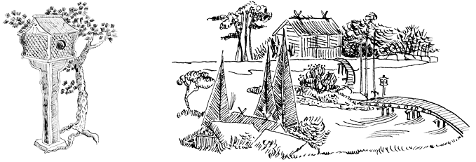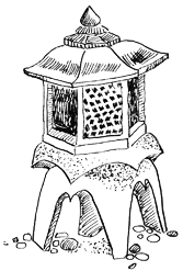 Небольшой пруд с искусственными островами, соединенными арочным мостом, выстроенные в уникальном порядке камни различной формы и размера, каменная дорожка, извивающаяся между густыми кустами и невысокими стройными деревьями.
