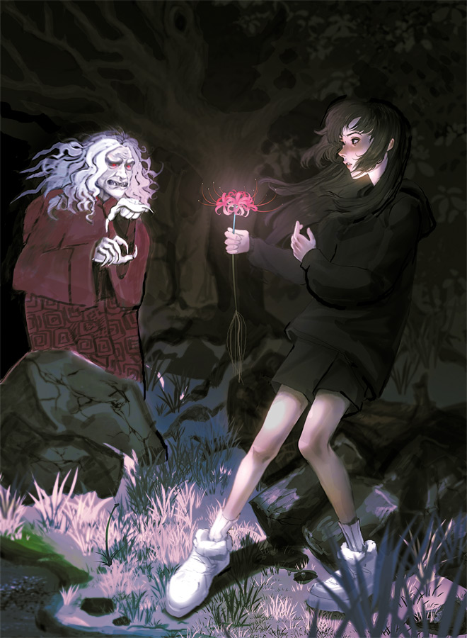 Теперь в голосе Хасэгавы зазвенела печаль, и он с горестью нахмурился. Я понимала, что Хасэгава врал, как и я, и перевела взгляд обратно на Ямамбу. Ведьма усмехнулась, и я с испугом подумала, что она не повелась на слова Хасэгавы и сейчас убьет его…
