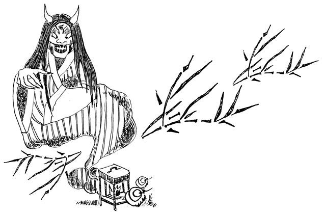 Отрубив голову очередной рыбе, ёкай схватила ее и запихнула в рот. Быстро прожевав и проглотив голову, она вцепилась зубами в тушку и рассмеялась с набитым ртом.