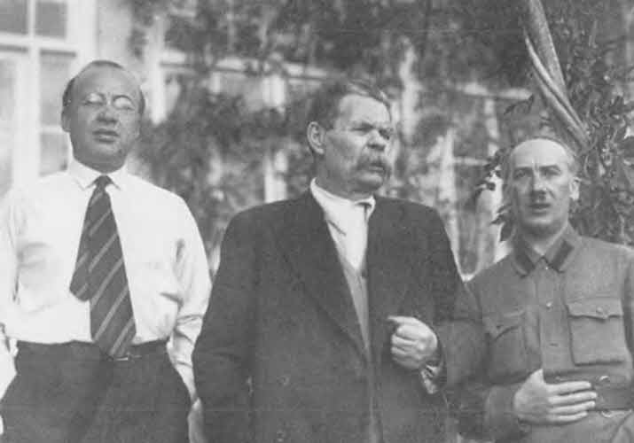 Под опекой чекистов: слева – секретарь Горького Петр Крючков, справа – председатель ОГПУ Генрих Ягода. 1933 г.