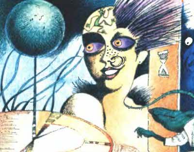 Юная секретарша действительно производила неизгладимое впечатление. А для многих, увидевших ее в первый раз, это впечатление было прямо-таки сногсшибательным. Справа ее волосы торчали во все стороны длинными зелеными иглами, на кончиках которых озорно подмигивали огни Святого Эльма, другая сторона головы была выбрита, и на совершенно гладкой, голой коже дергалась подвижная татуировка, изображавшая забавного проказливого чертика, который, к тому же, постоянно менял свой цвет. В аккуратной дырочке, проделанной в правой ноздре ее вздернутого веснушчатого носика, непрерывно крутилось набранное из оранжевых искусственных жемчужин – такие прежде выменивали у лоринов из звездной системы Ново-Китежа на фляги с водой – маленькое колечко, опровергавшее все запреты на вечный двигатель.