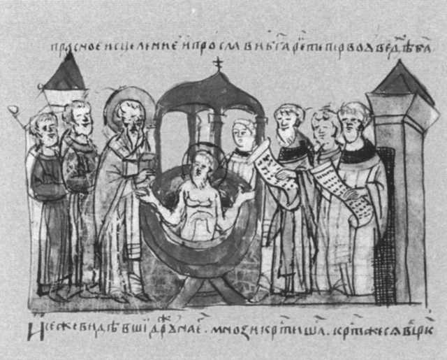 Крещение княгини Ольги. Миниатюра Радзивиловской летописи. XV в.