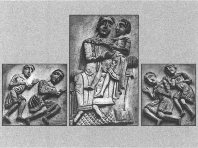 Предполагаемое изображение князя Всеволода Юрьевича с сыновьями. Фрагмент скульптуры Дмитриевского собора во Владимире.