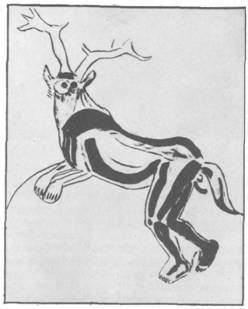 Другой вид антропоморфных изображении – это так называемые „колдуны", или люди в звериных масках. Как бы ни трактовать эти гравюры и рисунки – как отображение реальных магических ритуалов, в которых участвовали люди в звериных масках, или же как изображения мифических тотемных предков, – остается несомненной связь их с первобытной магической или тотемической обрядностью.