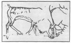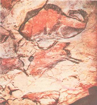 В палеолитическом искусстве изображения животных, как известно, преобладают над всеми иными изображениями. По подсчетам французского исследователя А. Леруа-Гурана, в 66 пещерах с росписями имеется 610 изображений лошадей, 510 – бизонов, 205 – мамонтов, 176 – козлов, 137 – первобытных быков-туров, 135-ланей, 112 – благородных оленей, 84-северных оленей, 36 – медведей, 29 – львов, 16 -носорогов [1]. На территории СССР найдены также многочисленные скульптурные и живописные изображения животных палеолитической эпохи. Научной сенсацией было открытие палеолитической живописи в Каповой пещере на Урале в 1959 г., где обнаружены выполненные краской на скале изображения мамонтов, носорога и лошадей [2].