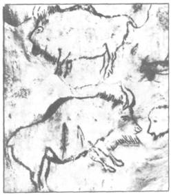 Как уже говорилось, зачатки искусства связаны не только с процессом изготовления орудий труда, но и с развитием средств общения между людьми. Первоначально (у архантропов), по-видимому, средства общения были непосредственно вплетены в процесс деятельности и представляли собой нерасчлененные жесто-звуковые комплексы [2]. В дальнейшем процесс Общения отделяется от процесса труда и приобретает в своем развитии относительную самостоятельность. В верхнем палеолите, у людей современного физического типа, средства общения реализуются прежде всего в звуковой речи, которая становится членораздельной и служит формой логического понятийного мышления, но, кроме того, они реализуются в рисунке и жесте, которые в большинстве случаев выступают элементами обрядового комплекса.
