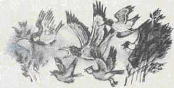 А летом опять свои неприятности. Раз ястреб версты две гнался за Воробьем Воробеичем, и тот едва успел спрятаться в речной осоке.