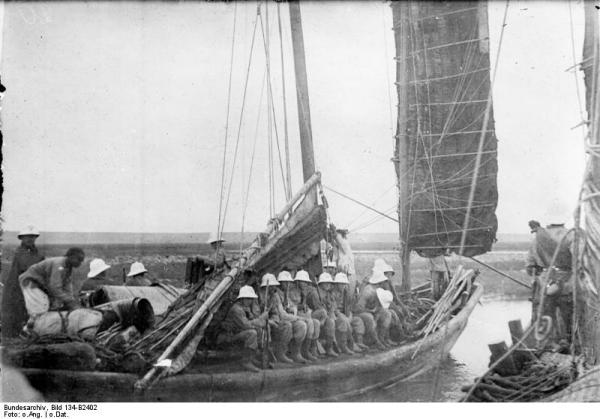 Германская эскадра шла к морю, не задерживаясь и не вступая в перестрелку с проявлявшими себя то на южном, то на северном берегах Янцзы легкими орудиями. Как и раньше впереди двигались с тралами канонерки, очищая фарватер от возможных мин. После предупреждения по радио о наличии у китайцев субмарин, охрану броненосных кораблей от подводных атак несли легкие крейсера, готовые таранить замеченную подлодку. Но противник на реке не появлялся. Очевидно, под впечатлением безжалостной расправы над их броненосцами, китайцы убрали остальные свои суда на Янцзы поглубже в протоки.
