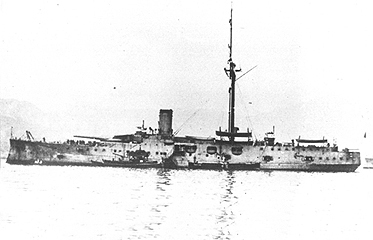 «Арчер» шел на головной китайский корабль – «Ицу-Юань». Этот архаично выглядевший крупнотоннажный крейсер французской постройки имел впереди сверхтяжелое орудие, которое не поспевало разворачиваться за маневрирующим «Арчером», лихо палящим из двух пушек в носовых башенках. 6-дюймовый снаряд с «Арчера» попал китайцу в стык орудийного барбета и прикрывавшего тяжелую пушку бронекупола и взорвался внутри барбета, повредив осколками сложную систему гидравлики орудия. Лишившись главного калибра, командир «Ицу-Юаня» развернул свой крейсер и открыл по «Арчеру» огонь всей батареей из пяти скорострельных 4,7-дюймовых орудий левого борта. Канониры «Арчера» не успели перезарядить свои устаревшие пушки, как вражеские снаряды буквально изрешетили осколками их легко бронированные башенки.