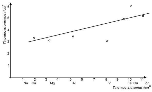 Рис. 27. Корреляция плотности атомов и плотности их окислов