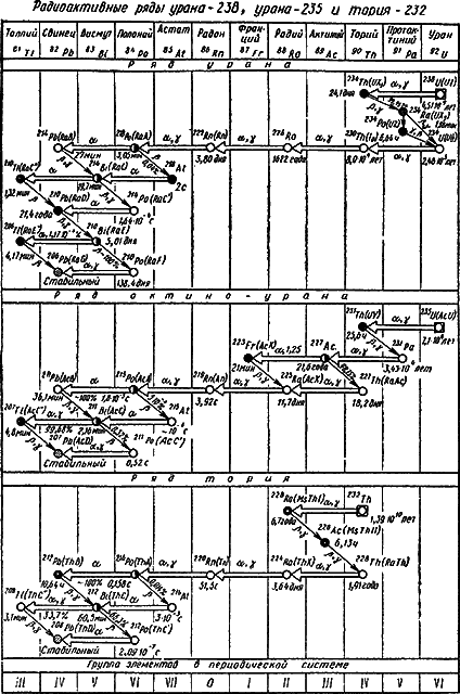 Современный вид трех радиоактивных семейств приведен на странице 159.