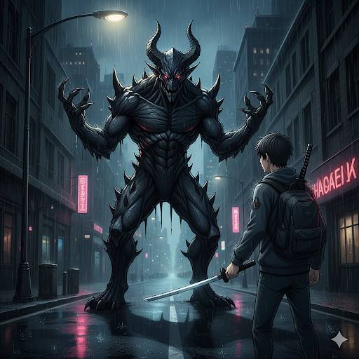 Посреди улицы, в луже чего-то темного и густого, стоял ОН. Трехметровый, покрытый черной чешуей, похожей на оплавленный обсидиан. В когтистой лапе окровавленный обрывок того, что минуту назад было человеком.