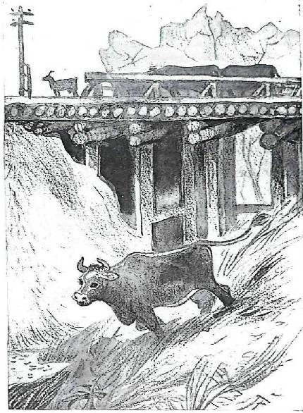 Нету! Забегаю, гляжу под мост – нету. Стоит чей-то один телёнок. Который… вдруг, как стрела, наутёк. Вот глупый! Мне до тебя и дела нет вовсе. Я думаю, где Жданка.
