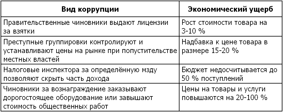 [Закрыть] видов коррупции и экономического ущерба от них в России: