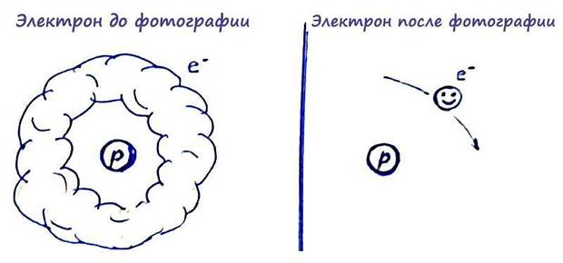 Во-вторых, выяснилось, что электрон даже и не частица, а волна. И вообще он не летает вокруг ядра, а находится в каждой точке орбитали одновременно, если его специальным образом не ловить. В теории он скорее похож на облачко вокруг ядра атома с формой этой самой орбитали. И как только начинаешь опытным путем выяснять, где он находится, то он внезапно из волны превращается в частицу, типа, вот он я.