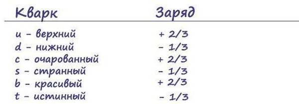 Обратите внимание, что у кварков дробный заряд. Его также пришлось ввести, чтобы объяснить, как из кварков получается положительно заряженная частица протон или нейтральный нейтрон.