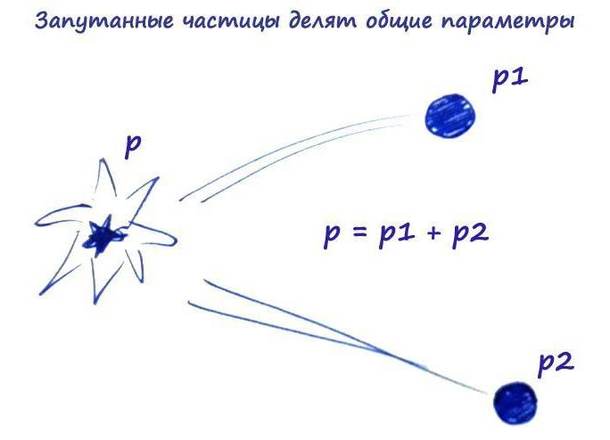 Рискнем упрощенно разобрать суть парадокса – вы же за этим читаете наши лекции? Допустим Гейзенберг немного прав, и мы почему-то не можем измерить импульс и координаты частицы одновременно. Но, кажется, у Эйнштейна есть лайфхак. Давайте возьмем частицу, которая собирается распадаться! После распада образуется две частицы: они разлетятся, получив некоторые общие характеристики. Такие частицы физики называют «запутанными» (запомните этот термин). Отбросив сложную матчасть, вспомним закон сохранения импульса из классической механики – суммарный импульс тел ДО равен суммарному импульсу ПОСЛЕ. Итак, «материнская» частица распадается, а ее части разлетаются, поделив импульс между собой, как бильярдные шары.