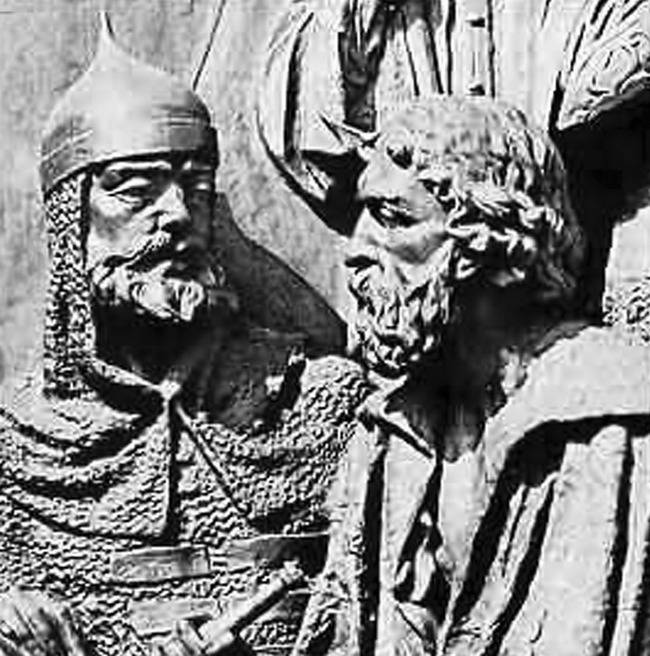 Князья Мстислав Удатный (слева) и Даниил Галицкий. Памятник Тысячелетию Государства Российского в Новгороде. 1862 г.