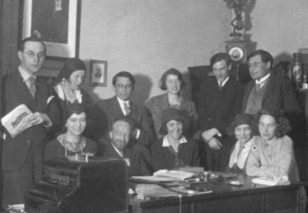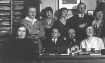 «Скит поэтов». Прага, 21 мая 1926 г. Слева направо: А. Ф. Вурм, Т. И. Дзевановская, Э. К. Цегоева, Н. В. Дзевановский, М. М. Мыслинская, В. Ф. Мансветов, А. В. Эйснер, А. Л. Бем, X. П. Кроткова-Франкфурт Снимок сделан в комнате Педагогического бюро. Фотографии хранятся в Литературном архиве Музея национальной письменности в Праге. Публикуются впервые