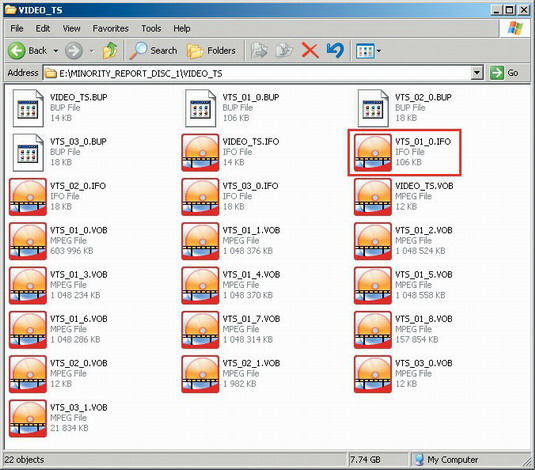 Структура любого DVD включает файлы с расширением ifo с полной информацией о фильме. В нашем случае данные основного фильма «зашиты» в файле VTS010.IFO,