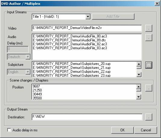 В секции Scene Changes/ Chapters следует указать файл Celltimes.txt, ведающий началом каждой главы, а в секции Output Stream – очередную папку для сохранения собранного проекта. В итоге окно нового проекта примет вид, как на рис. 12 .