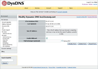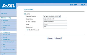 Производители «комбайнов» подумали об этом и встроили клиенты обновления прямо в свои устройства. Два с лишним десятка модемов-маршрутизаторов от ZyXEL’а (их список находится по адресу zyxel.ru/content/support/knowledgebase/KB-1257 ) и около десятка от D-Link имеют договор на постоянное обслуживание с Dynamic DNS сервисом DynDNS , и все, что вам останется после того, как вы бесплатно там зарегистрируетесь и выберете доменное имя, – это включить соответствующую галочку в веб-интерфейсе маршрутизатора да настроить внутренний файрвол, если, конечно, вы им пользуетесь. Не скажу, что эти настройки элементарны (особые проблемы возникали у меня при попытке попасть по динамическому адресу на собственный компьютер: извне он виделся, а изнутри – нет), однако, вполне посильны. На уже упомянутой страничке ZyXEL’а есть даже специальный pdf-файл с подробностями настроек, а также подробно расписанной инструкцией по регистрации на сервисе DynDNS, которая вполне может пригодиться слабознающим английский язык, поскольку все вопросы на сайте, как не трудно догадаться, задаются исключительно на английском.