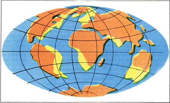 Впрочем, вскоре эта погруженная часть стала возвышаться над поверхностью океана и получила название Лавразии. Между ней и Гондваной заплескались волны теплого моря Тэтис, вытянувшегося в экваториальном направлении.