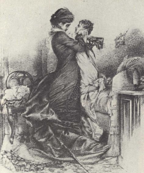 Свидание Анны Карениной с сыном. 1878 г. Б., тушь, сепия, перо. ГТГ.