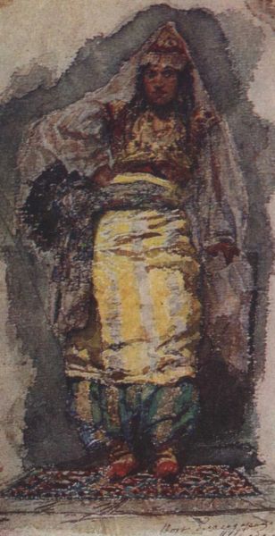 Натурщица в восточном костюме. 1884 г. Б., акв. Музей И. И. Бродского. Ленинград.