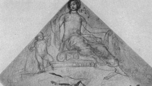 Эскиз композиции для академического торжества в память 400-летия со дня рождения Рафаэля. 1883 г. Б., кар., акв. ГРМ.