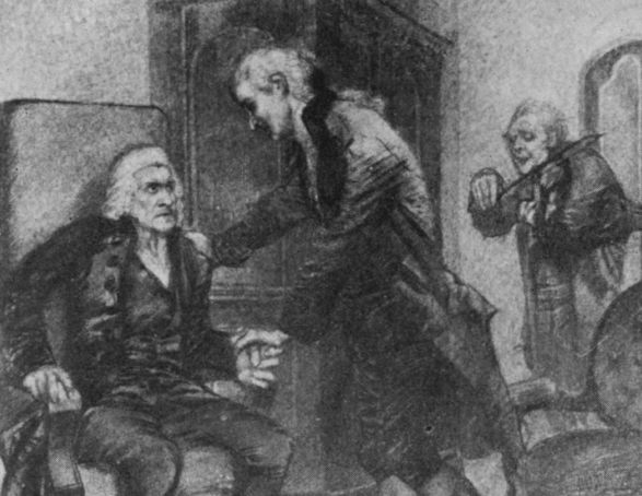 Моцарт и Сальери слушают слепого музыканта. 1884 г. Б., черн. акв. ГРМ.