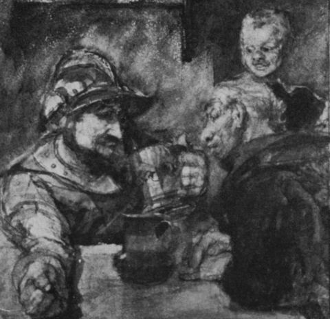 За кружкой пива. 1883 г. Б., акв. ГТГ.