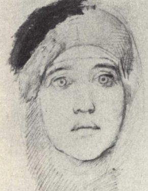 Э. Л. Прахова. Набросок для иконы Богоматери. 1885 г. Б., кар., акв. ГТГ.