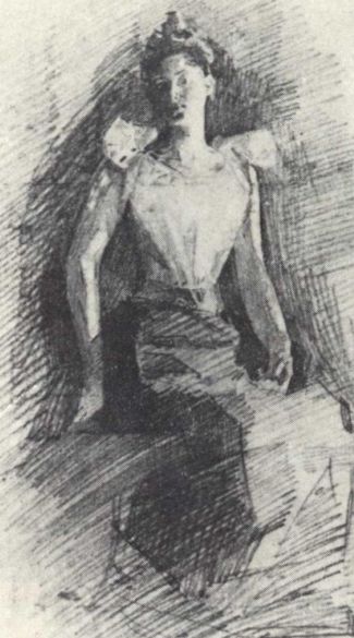После концерта (Портрет Н. И. Забелы). 1905 г. X., пастель, уголь. ГТГ.